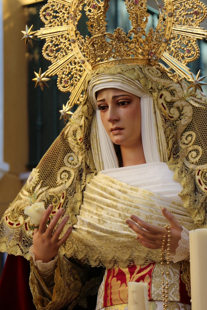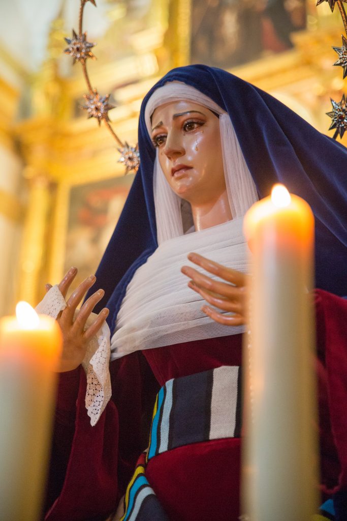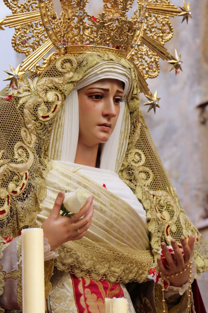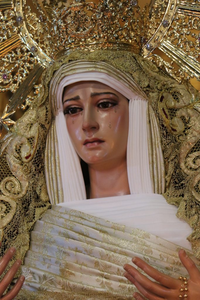 La Virgen fue restaurada en el año 2012 por el escultor sevillano Fernando J. Aguado Hernández. La restauración consistió en la articulación completa de los brazos de la Virgen por hombros, codos y muñecas. Además, se sustituyeron pestañas y lágrimas. Finalmente, conservando su policromía original, se le aplicó una pátina que permitió aumentar los matices, resaltando los rasgos de su bello rostro.