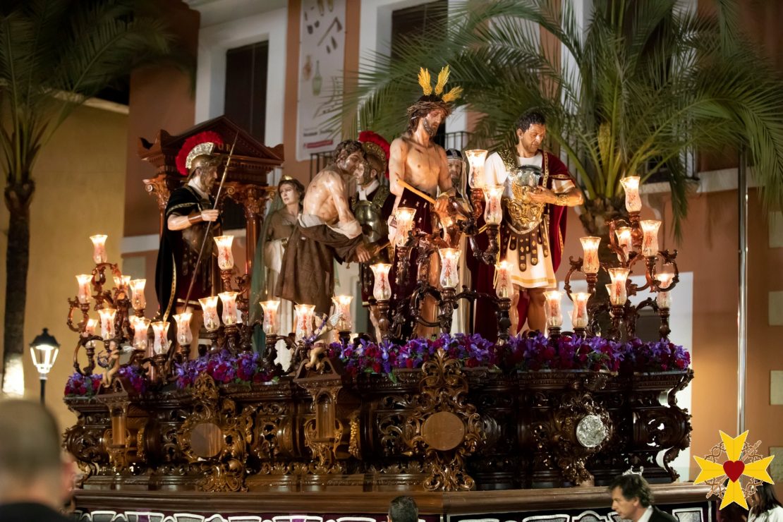 Tras el rezo preparatorio para la Estación de Penitencia, realizado por el sacerdote D. José Manuel Bascuñana (Vicario de la Basílica Ntra. Sra. del Socorro), las puertas de la hermandad se abrieron puntuales y el misterio de Ntro. Padre Jesús del Ecce Homo en su Sagrada Presentación al Pueblo salía, a los sones de la marcha “Encarnación” a una calle repleta de público que había estado esperando, algunos de ellos, desde una hora antes de la prevista para la salida. El Señor comenzaba a realizar su primera Estación de Penitencia a la Basílica Ntra. Sra. del Socorro.